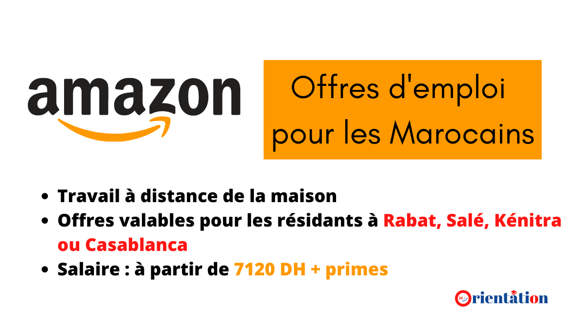 Travaillez à Domicile avec Amazon. Amazon recrute des Collaborateurs du service client à domicile en CDD résidants à Rabat, Salé, Kénitra ou Casablanca (Salaire 40,45 Dhs/h).